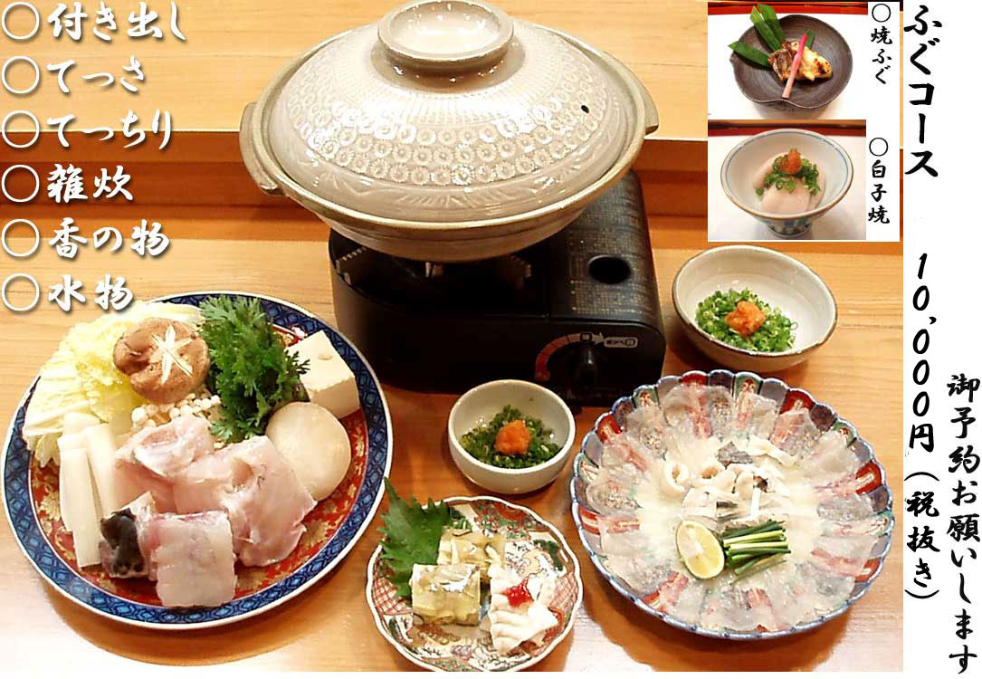 ふぐ(お一人様10,000円税抜き)コース(写真は見本です) |