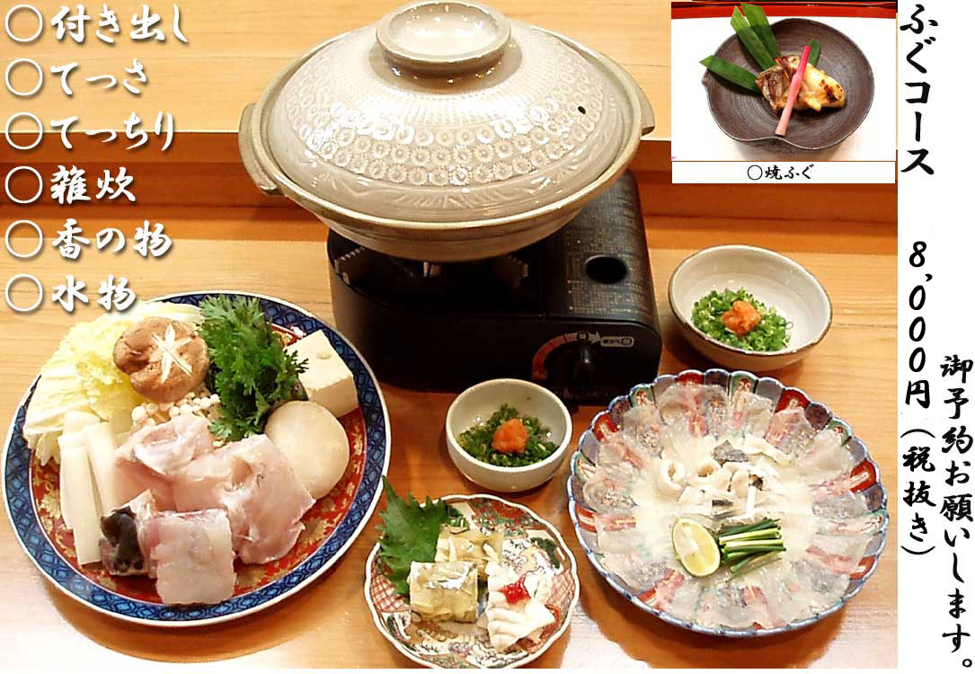 ふぐ(お一人様8,000円税抜き)コース(写真は見本です) |