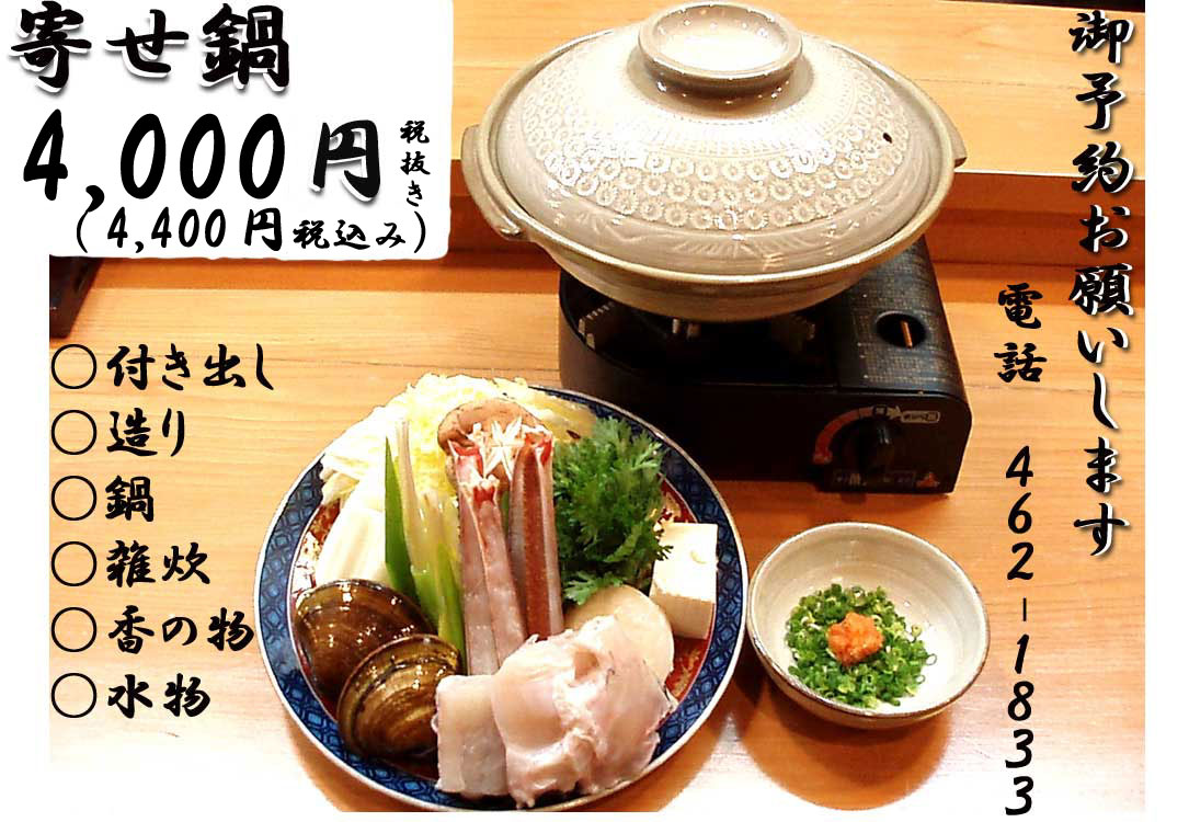 寄せ鍋コース(写真は見本です) |